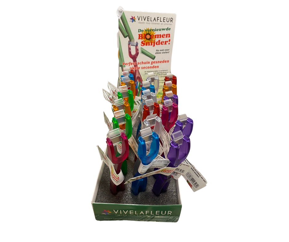 Deze handige en vernieuwde bloemensnijder is ideaal voor het schuin afsnijden van zowel dunne als dikke stelen. Dankzij het slimme ontwerp ligt hij prettig in de hand en snijd je moeiteloos een verse snede voor een optimale wateropname. Onmisbaar voor bloemliefhebbers en professionals!