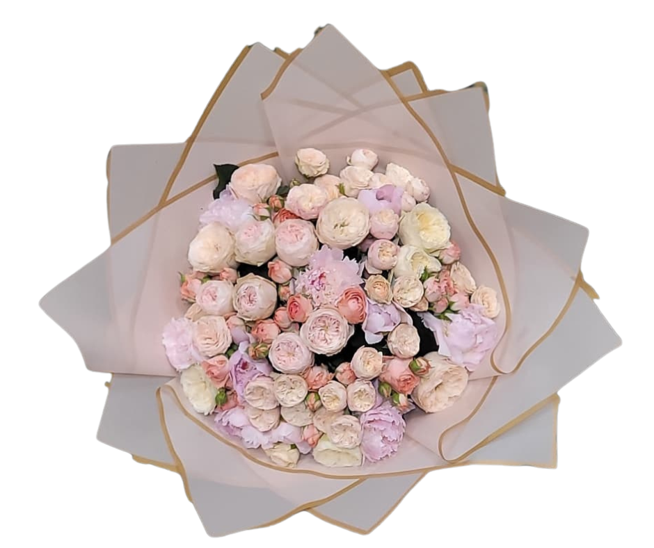 Dit elegante boeket, samengesteld uit premium rozen en pioenen, is prachtig verpakt in stijlvolle folie met gouden accenten. Perfect om waardering en liefde te tonen op Moederdag – een onvergetelijk gebaar waar ze nog lang van zal genieten. Bestel nu en bezorg een glimlach op haar gezicht!